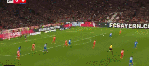 第25分钟,诺伊尔手抛球策动反击,比朔夫送出直传,格纳布里单刀破门,拜仁取得领先,1-0!