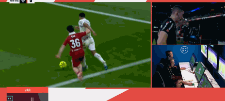 第90分钟,贝林厄姆禁区内倒地,主裁观看视频回放后取消点球判罚