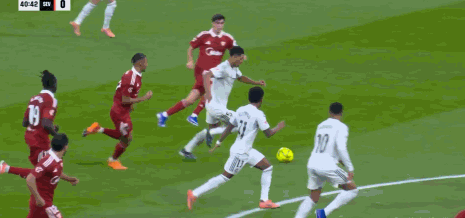 第39分钟,罗德里戈开出任意球,贝林厄姆头槌破门,皇马1-0
